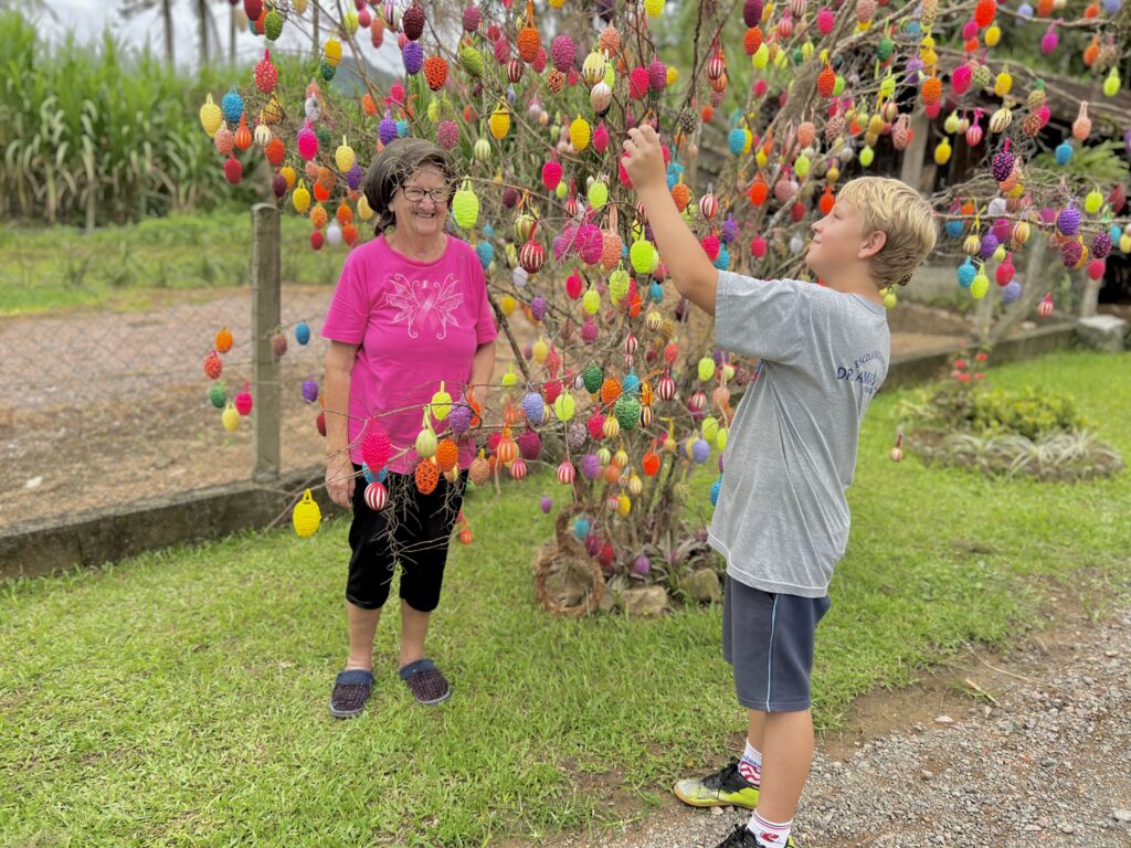 Quem passar pelas ruas do bairro até o domingo de Páscoa vai encontrar dezenas de árvores decoradas com casquinhas coloridas nos jardins das casas e estabelecimentos comerciais. Podem participar moradores e empresas da Rota do Enxaimel, considerada pela Organização das Nações Unidas (ONU) uma das melhores vilas turísticas do mundo.